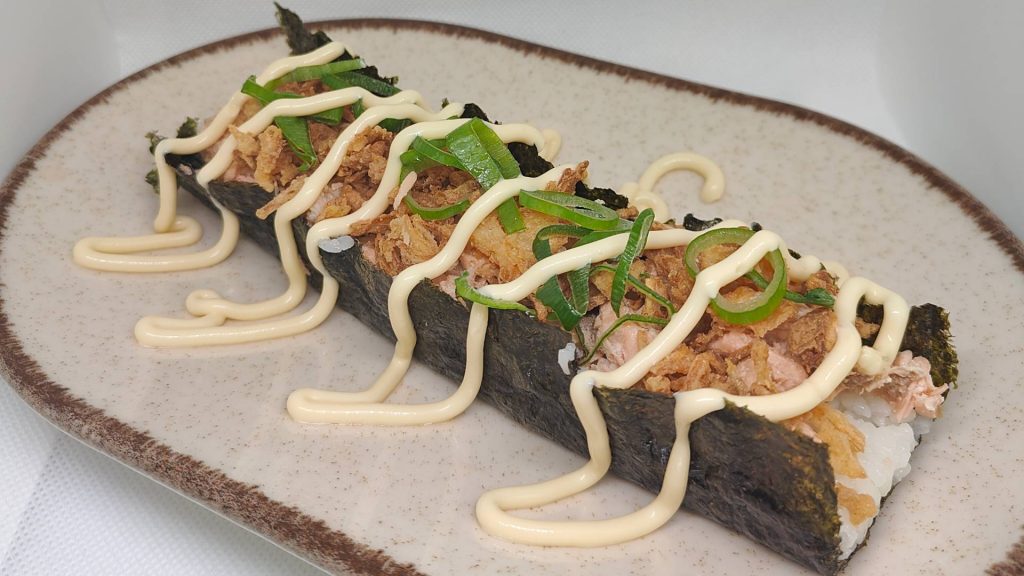 Le taco sushi est une fusion entre un taco mexicain pour la forme et un sushi pour les saveurs et les ingrédients.